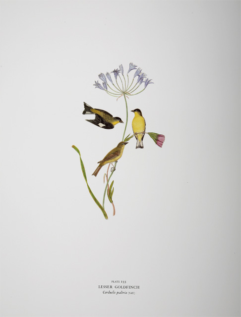 One of Grayson’s works was his illustration of the Lesser Goldfinch (Spinus psaltria), a small and colorful bird found in North America. His work, as pictured, shows the vibrant feathers of two males
