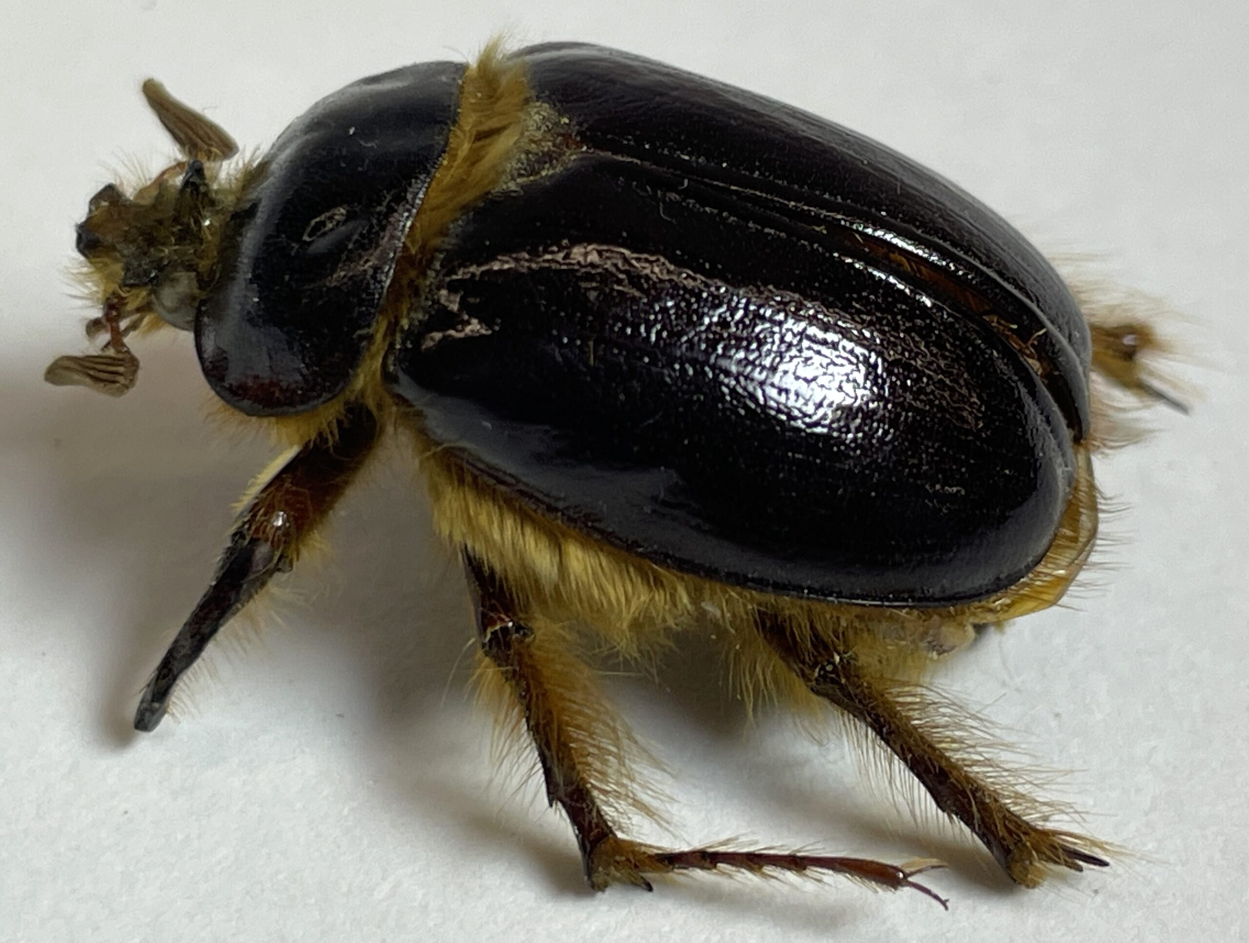 As an adult, they have an oval body with a hard, brown shell and a reddish-brown fuzzy belly. There is a small V-shaped scoop on their head that allows them to dig into the dirt. Despite their unique appearance, these beetles can be hard to find. They spend the majority of their lives 10 feet underground as grubs (beetle larvae), where they feed on tree roots. Over 7-14 years, they will have 9 or more instars, or developmental stages between molts. In the final molt when they become adults, the grubs lose their mouths and digestive tracts, leaving only the reproductive organs.